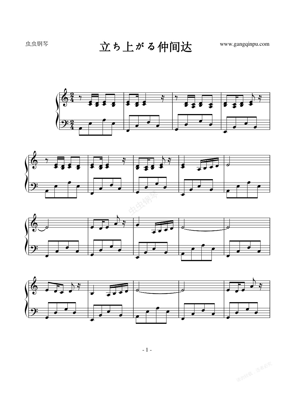 钢琴谱:家庭教师OST立ち上がる仲间达