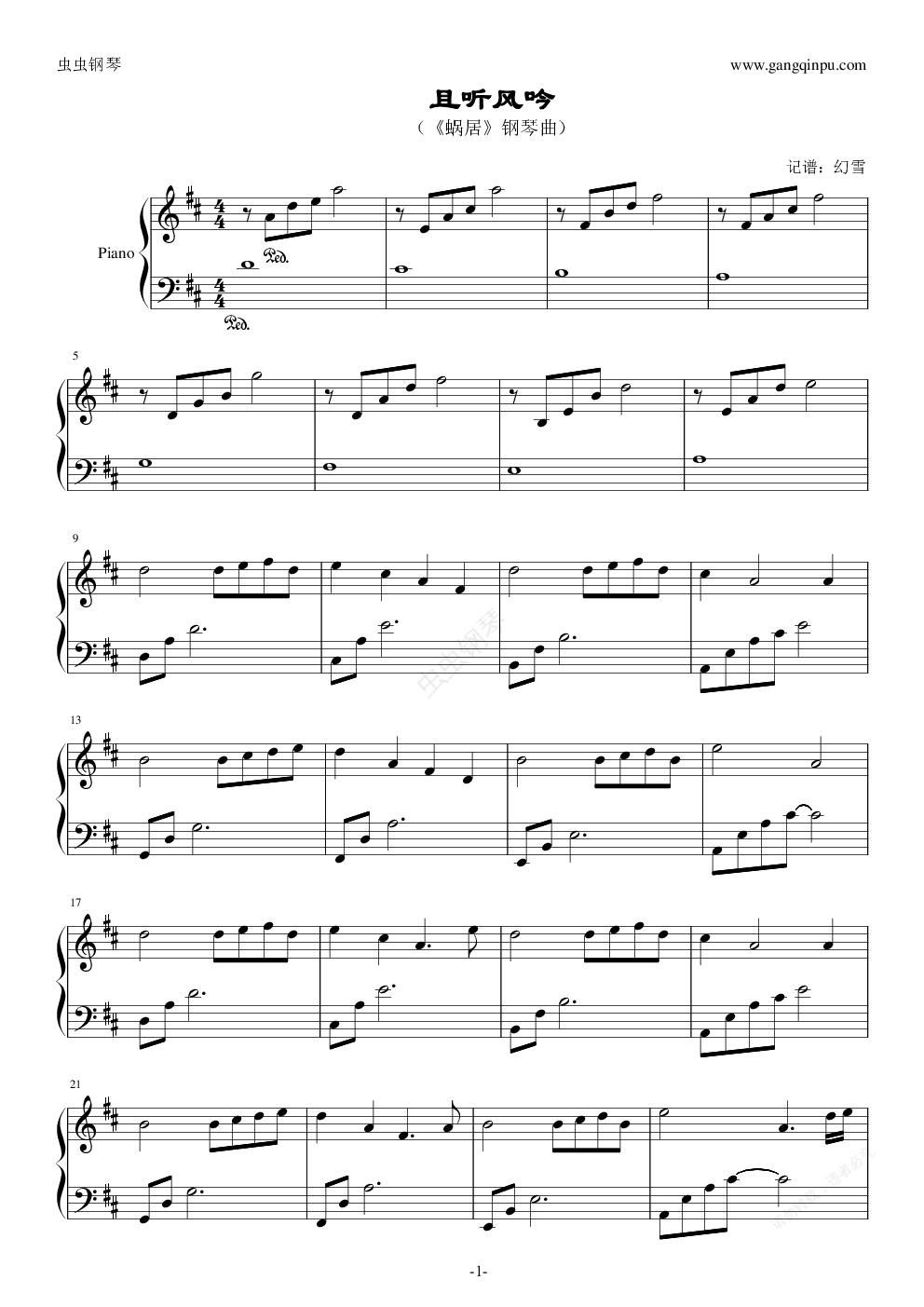 钢琴谱:《蜗居》钢琴曲《且听风吟》