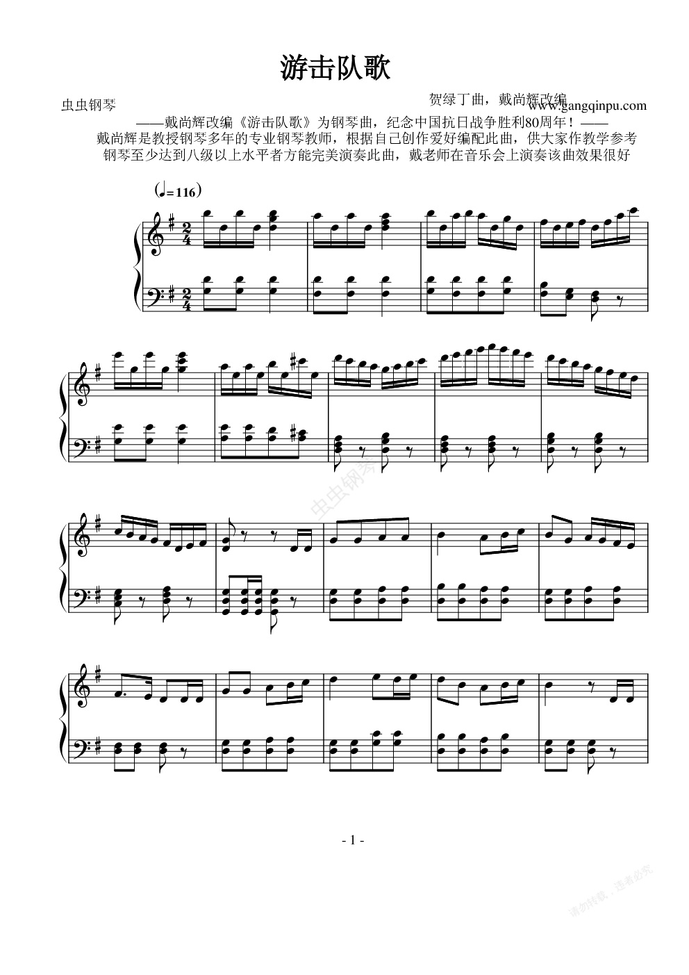 钢琴谱:游击进行曲抗日游击队歌震撼版