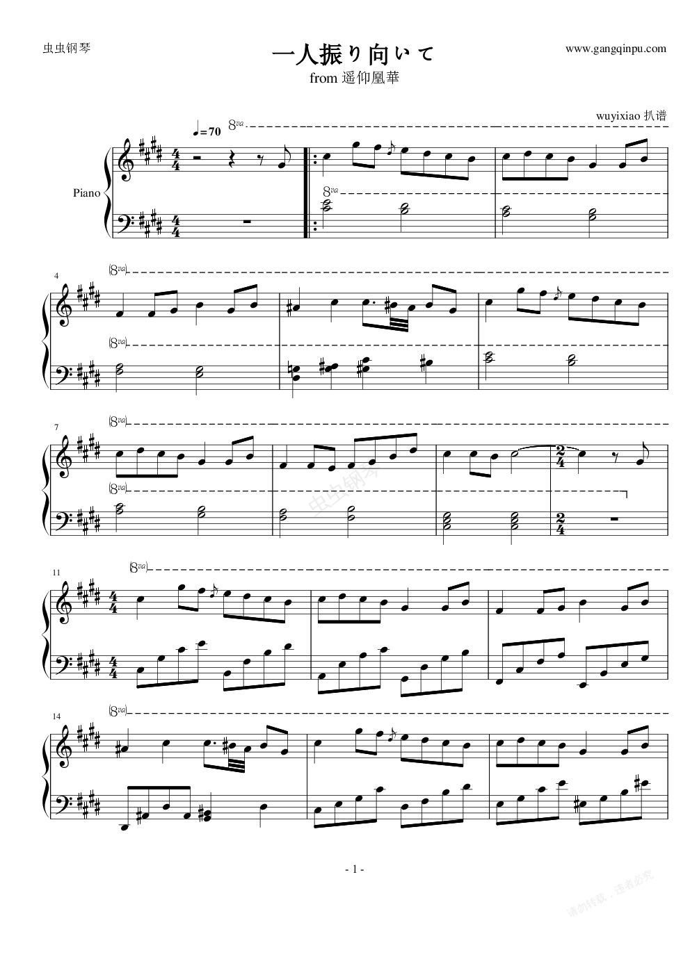钢琴谱:一人振り向いて (from 遥仰凰華)