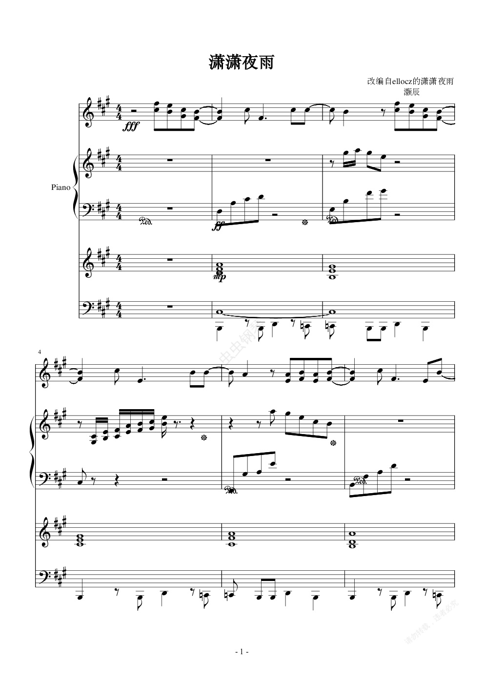 钢琴谱:潇潇夜雨