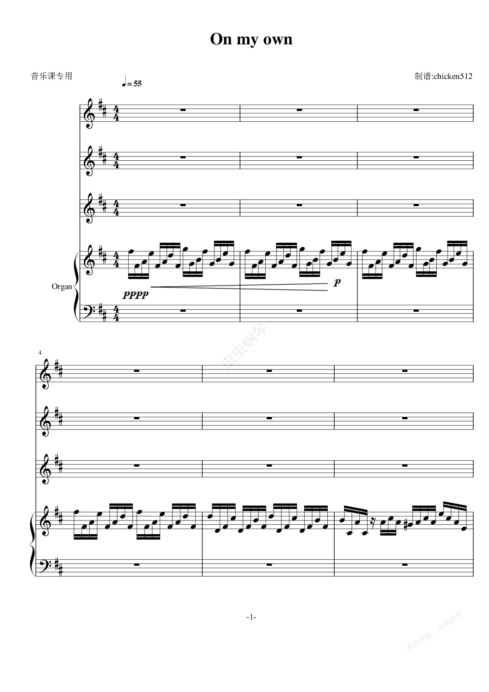 钢琴谱:悲惨世界ON MY OWN伴奏版