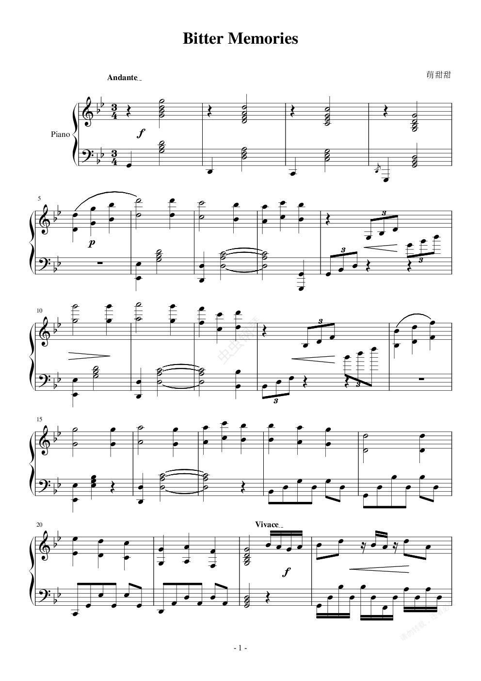 钢琴谱:苦涩的回忆