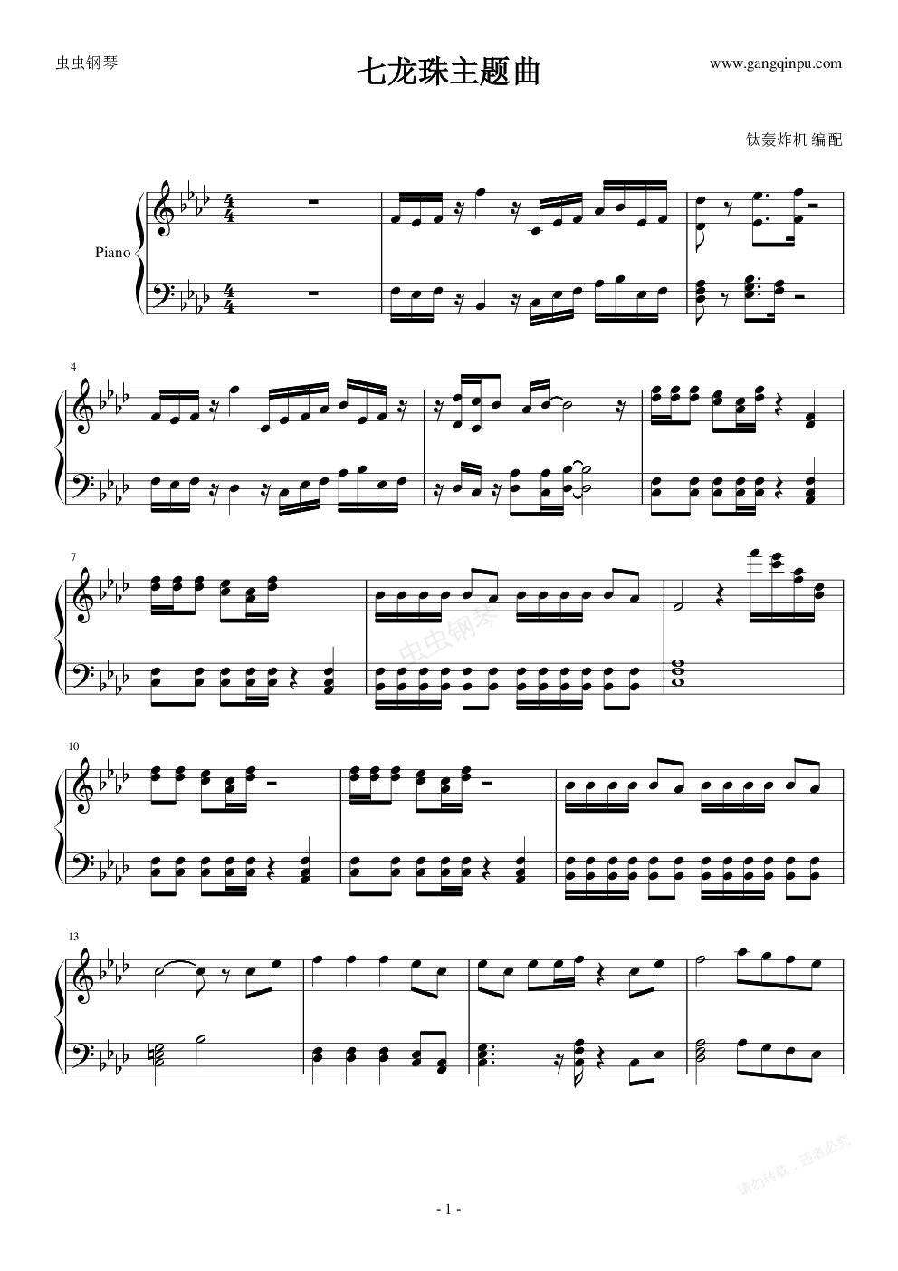 钢琴谱:七龙珠主题曲