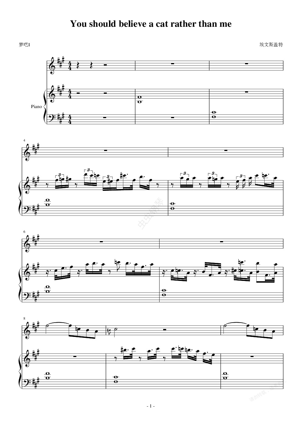 放假猫在家里写了不少~不过斟酌再三都觉得有欠缺最终没能传上来给大家听听……至于这个虽然觉得全曲下来既不好听也没什么内涵,歌词也写得跟说梦话似的(题目起得很梦话相信大家都能看出来)~~还是决定跟大家分享一下~歌词如下: Don’t  in me you wanna trick You can trust a cat But never  in me I am your  I could be your  woo Don’t  me as  Cuz’ I ‘d  to be Liszt (choir) XXX... Do you trust a cat~ Do you trust a cat I wanna  plus  off Harry  Gosh how could I   Throw them into Times River Blast the   I am not your Bin Laden a cat  than me Do you ? Do you ? Do you ? Do you? Don’t  to me Don’t  to me Don’t  to me Just don’t