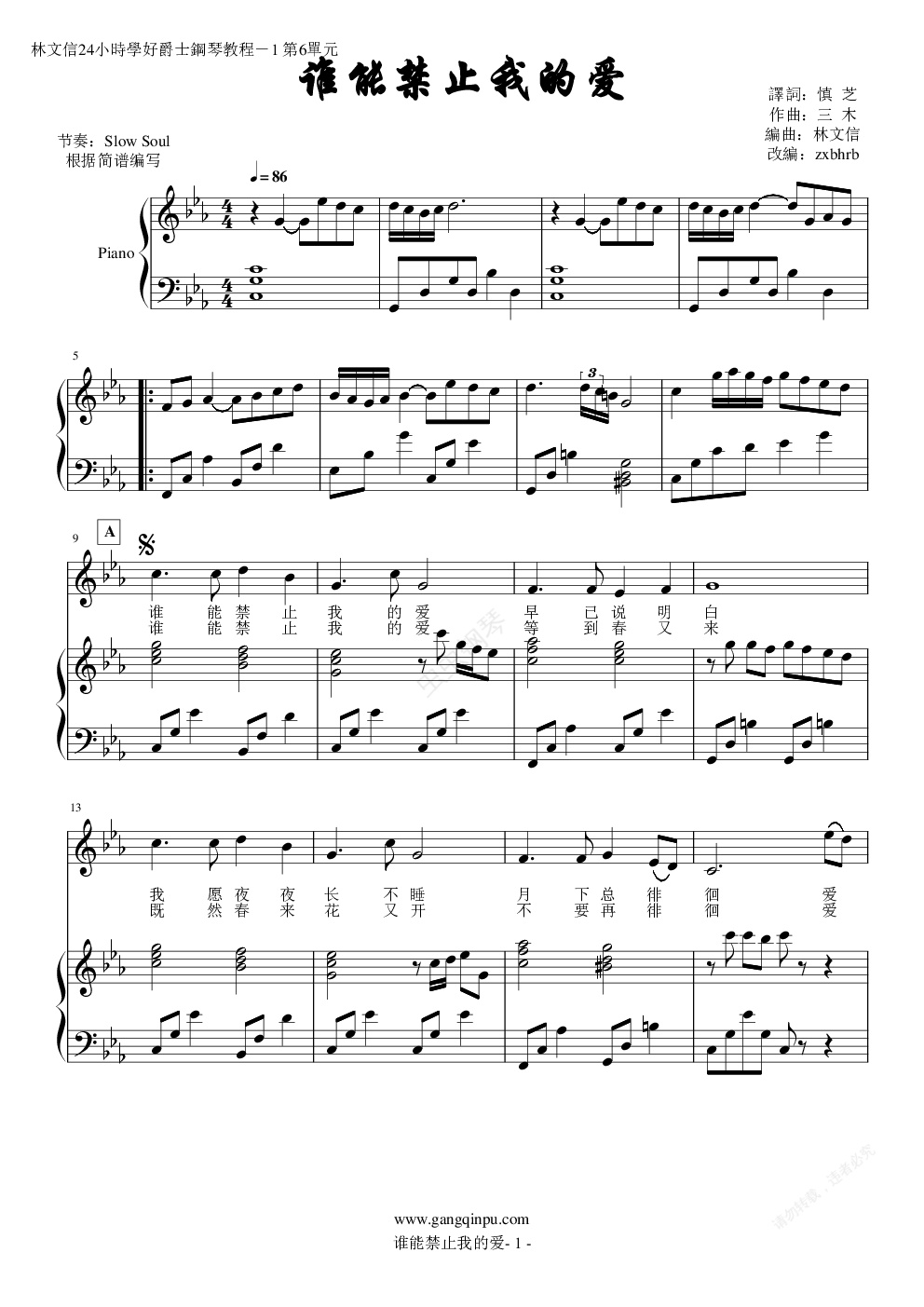 钢琴谱:《谁能禁止我的爱》(弹唱版)