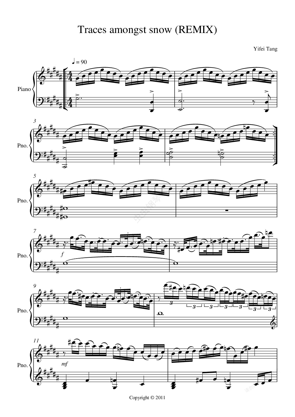 钢琴谱:《雪中的轨迹REMIX》 原创