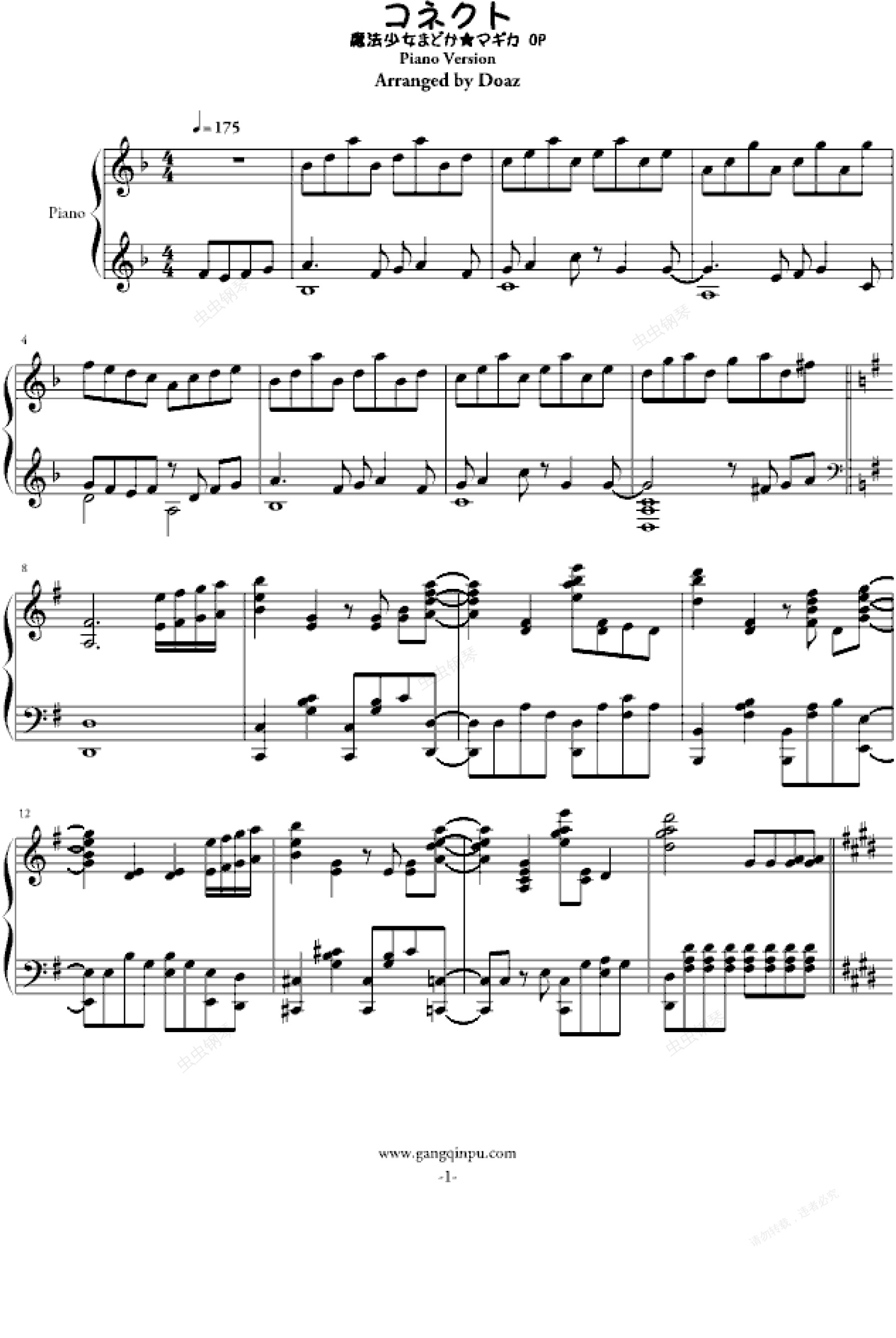 钢琴谱:【魔法少女小圆OP】コネクト