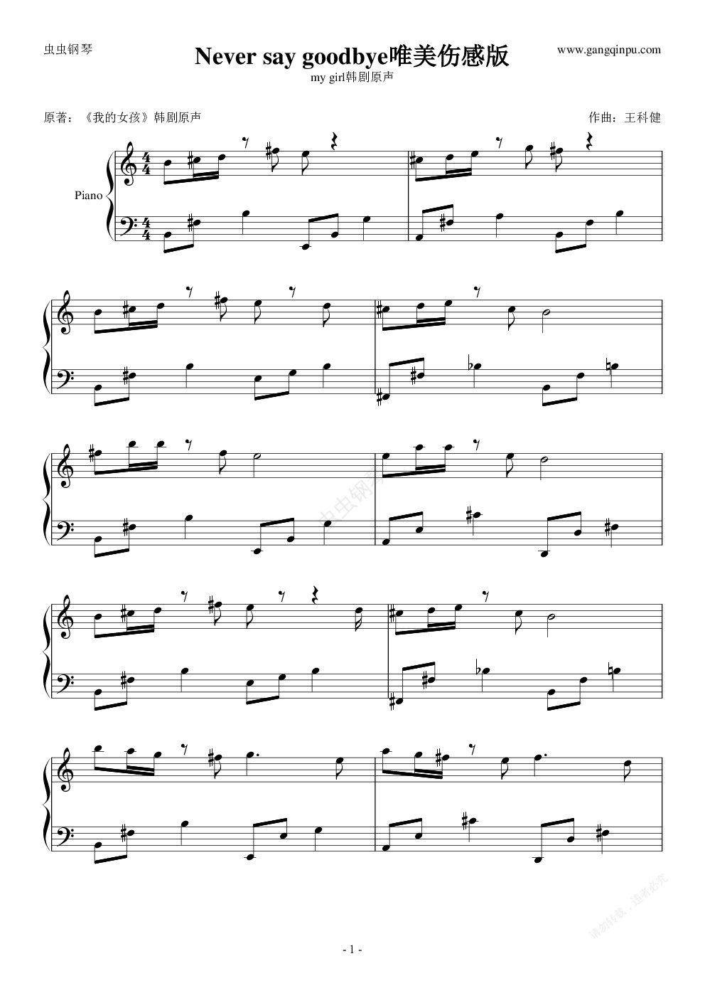 钢琴谱:never say goodbye唯美伤感版