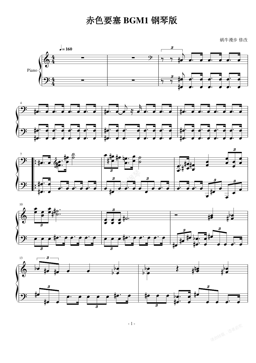钢琴谱:FC 赤色要塞BGM1 钢琴版
