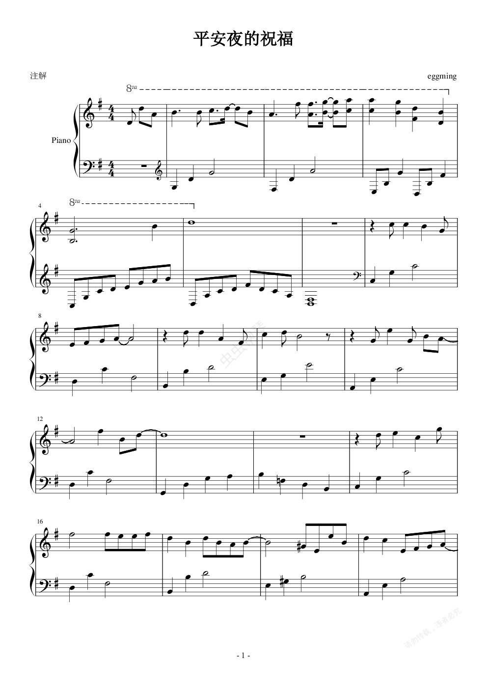钢琴谱:平安夜的祝福