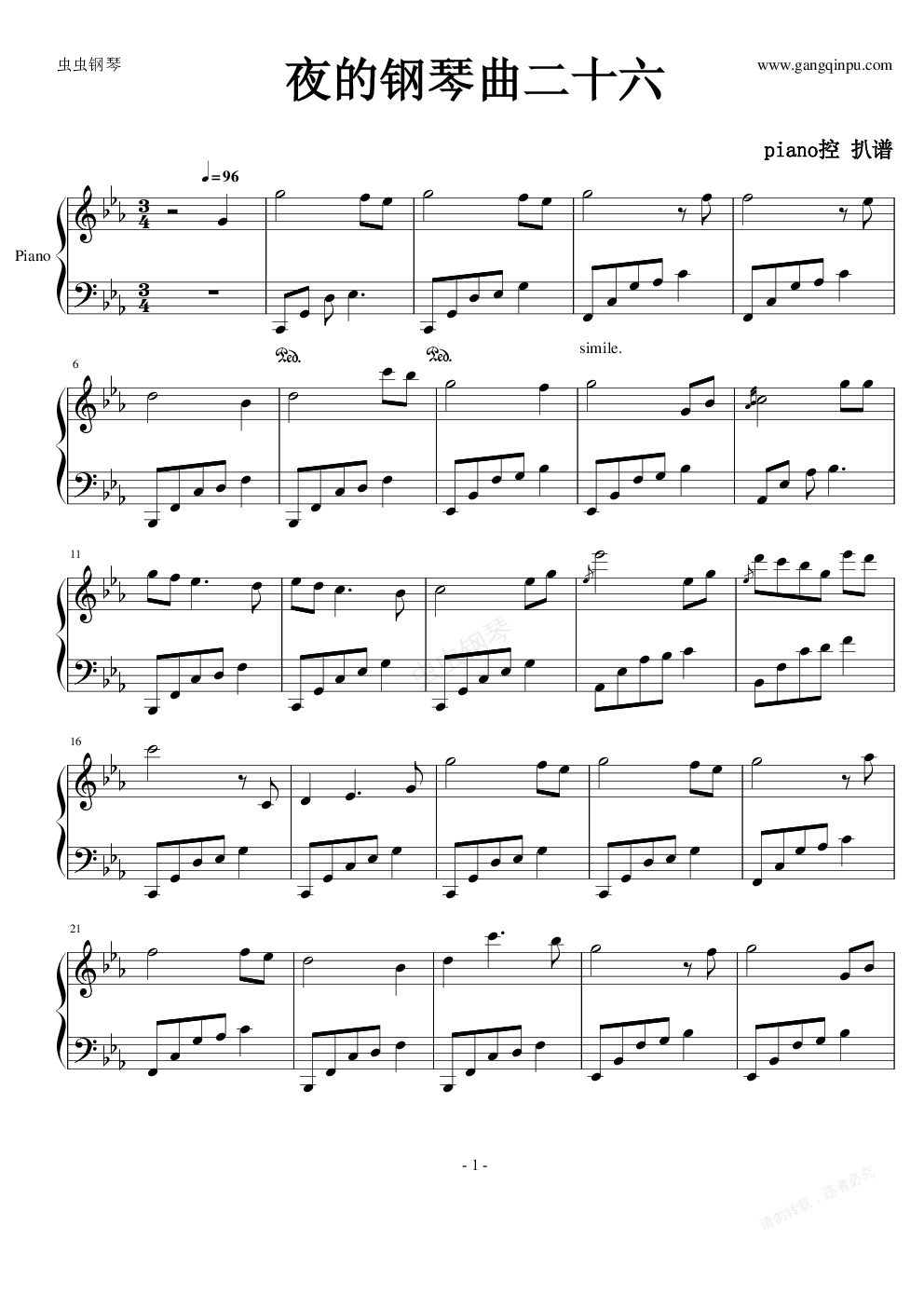 钢琴谱:夜的钢琴-石进二十六