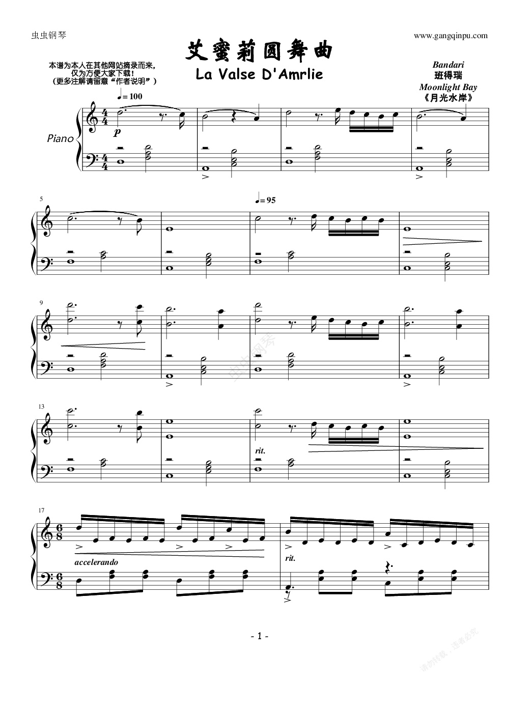 钢琴谱:La Valse DAmelie(艾蜜莉圆舞曲)