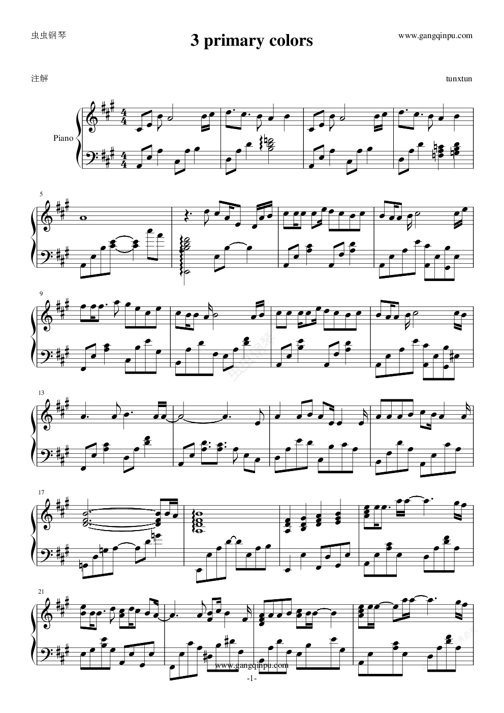 钢琴谱:数码宝贝3告别曲《3 primary colors》