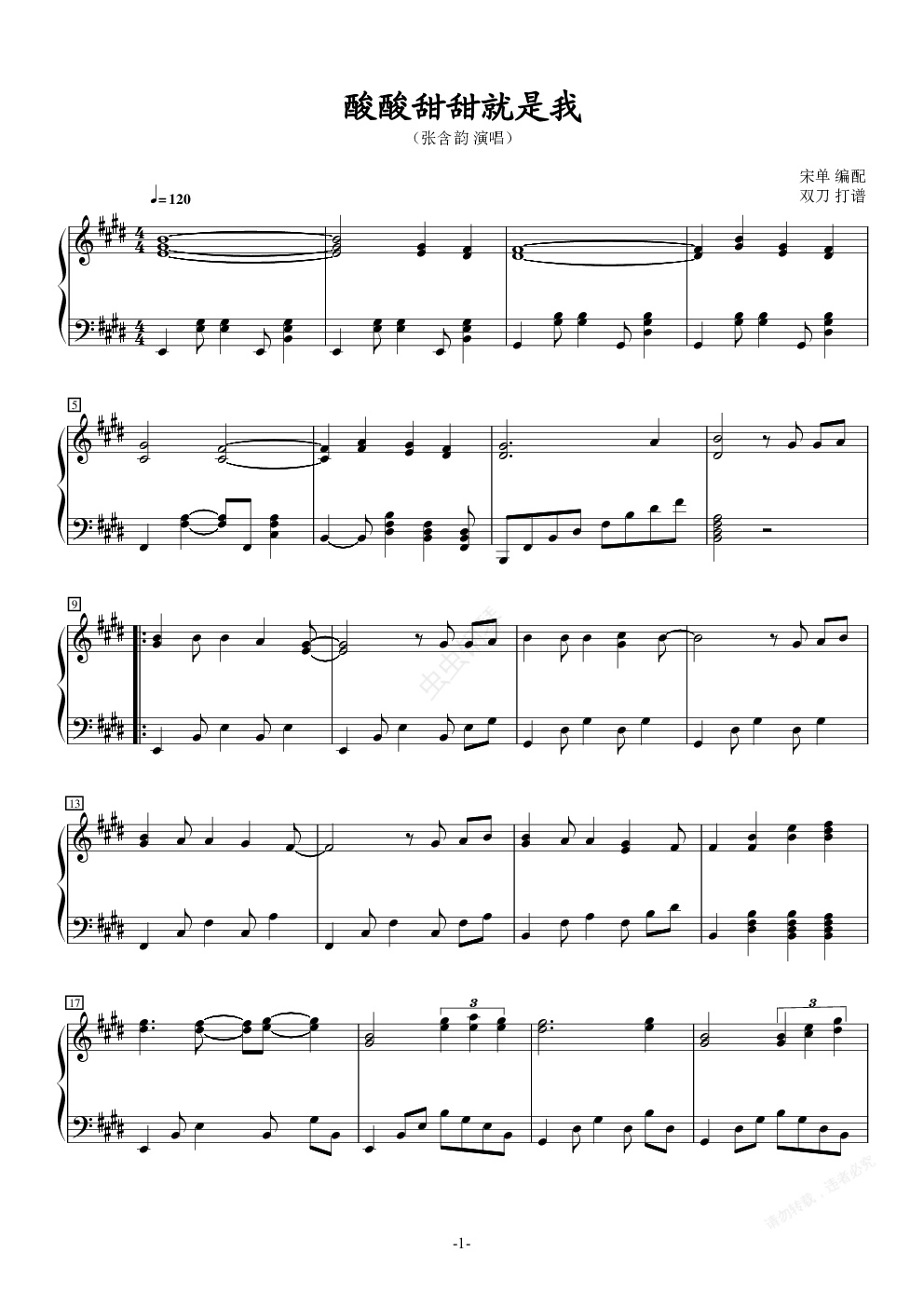 钢琴谱:《酸酸甜甜就是我》张含韵