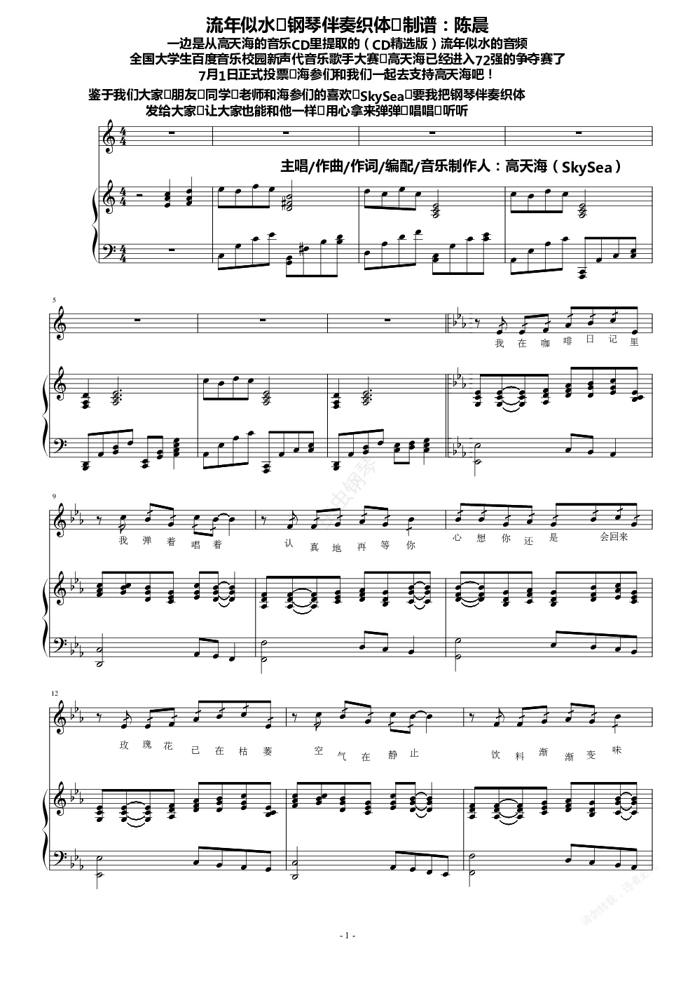 钢琴谱:CD精选版&钢琴伴奏织体!