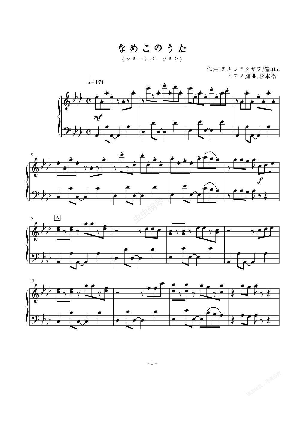 《菇菇之歌》是一款超萌手机游戏的主题曲,原唱福原遥。这个是从日本乐谱网站“同人音乐之森”花钱买回来的钢琴谱,与大家分享!なめこのうた(ピアノソロ?ショートver.)