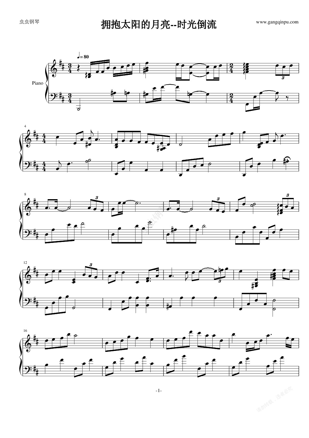 钢琴谱:时光倒流 시간을 거슬러《拥抱太阳的月亮》