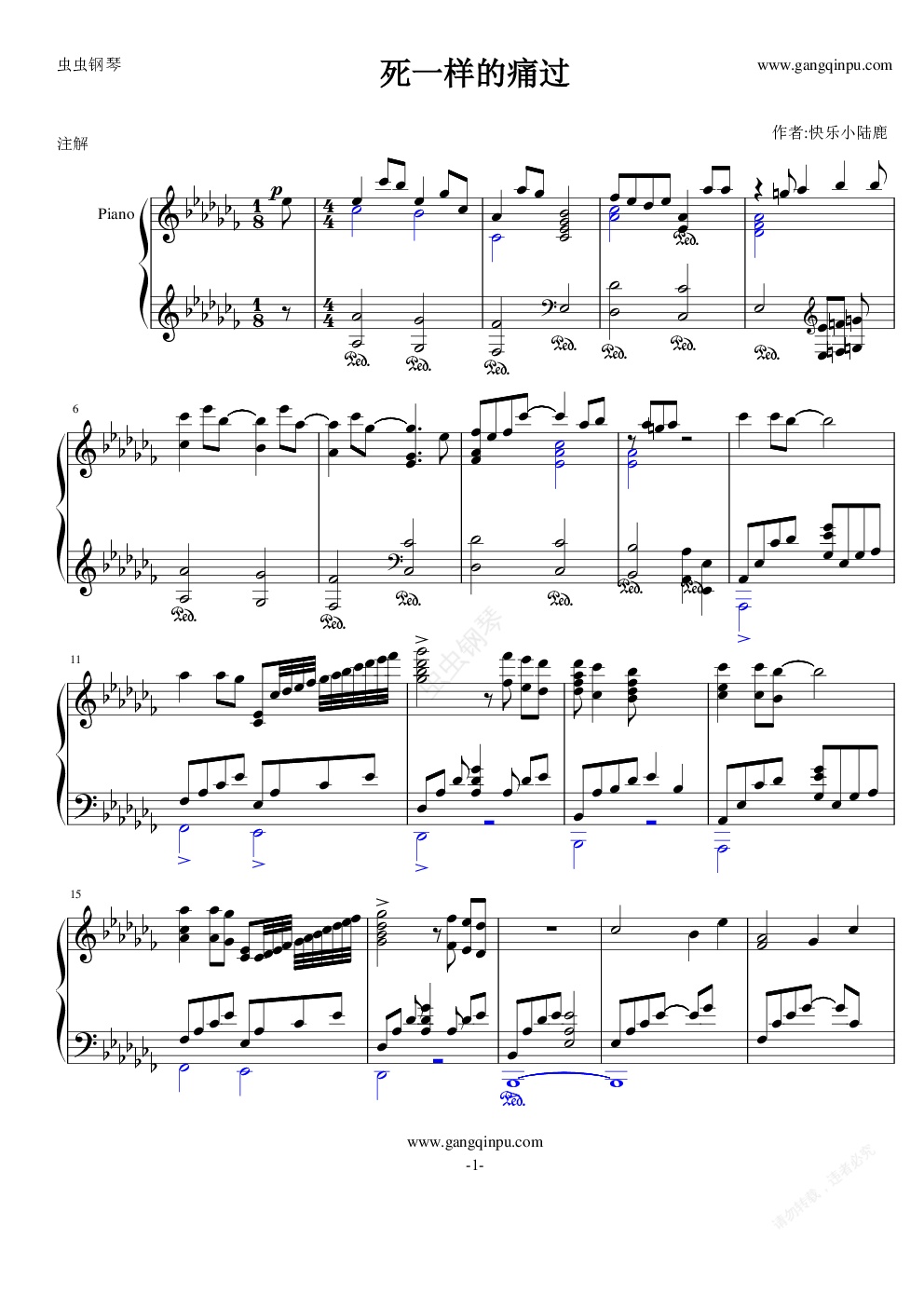钢琴谱:死一样的痛过-钢琴改编版