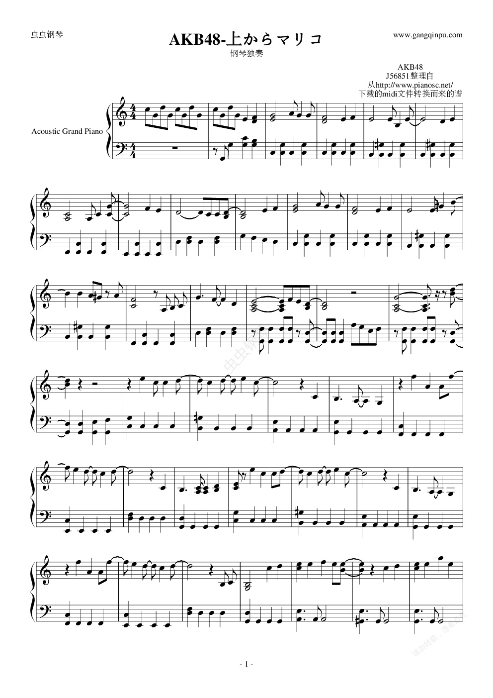 钢琴谱:AKB48 - 上からマリコ 钢琴独奏