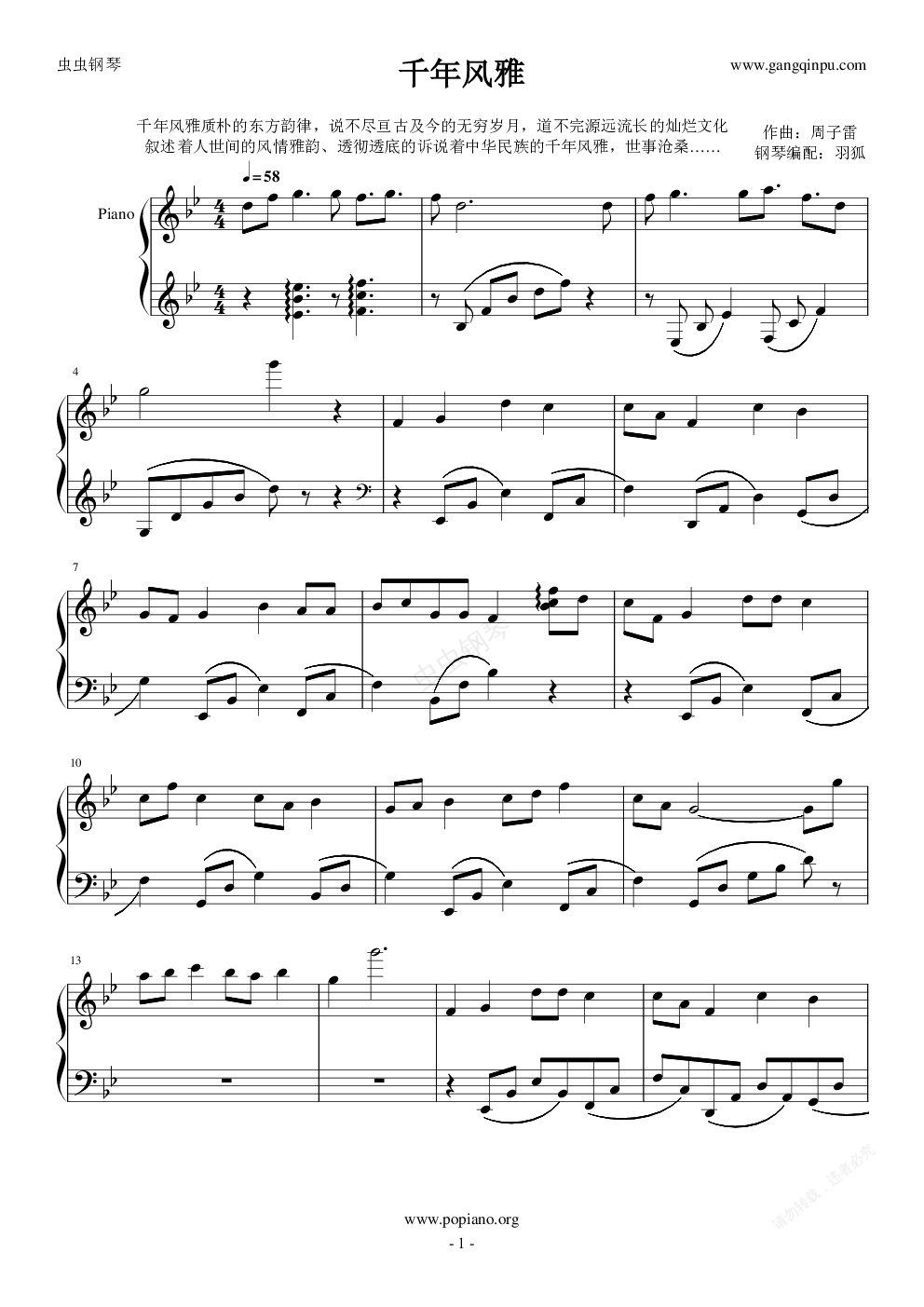 钢琴谱:千年风雅(陶笛大师周子雷作曲)古风伤感~~