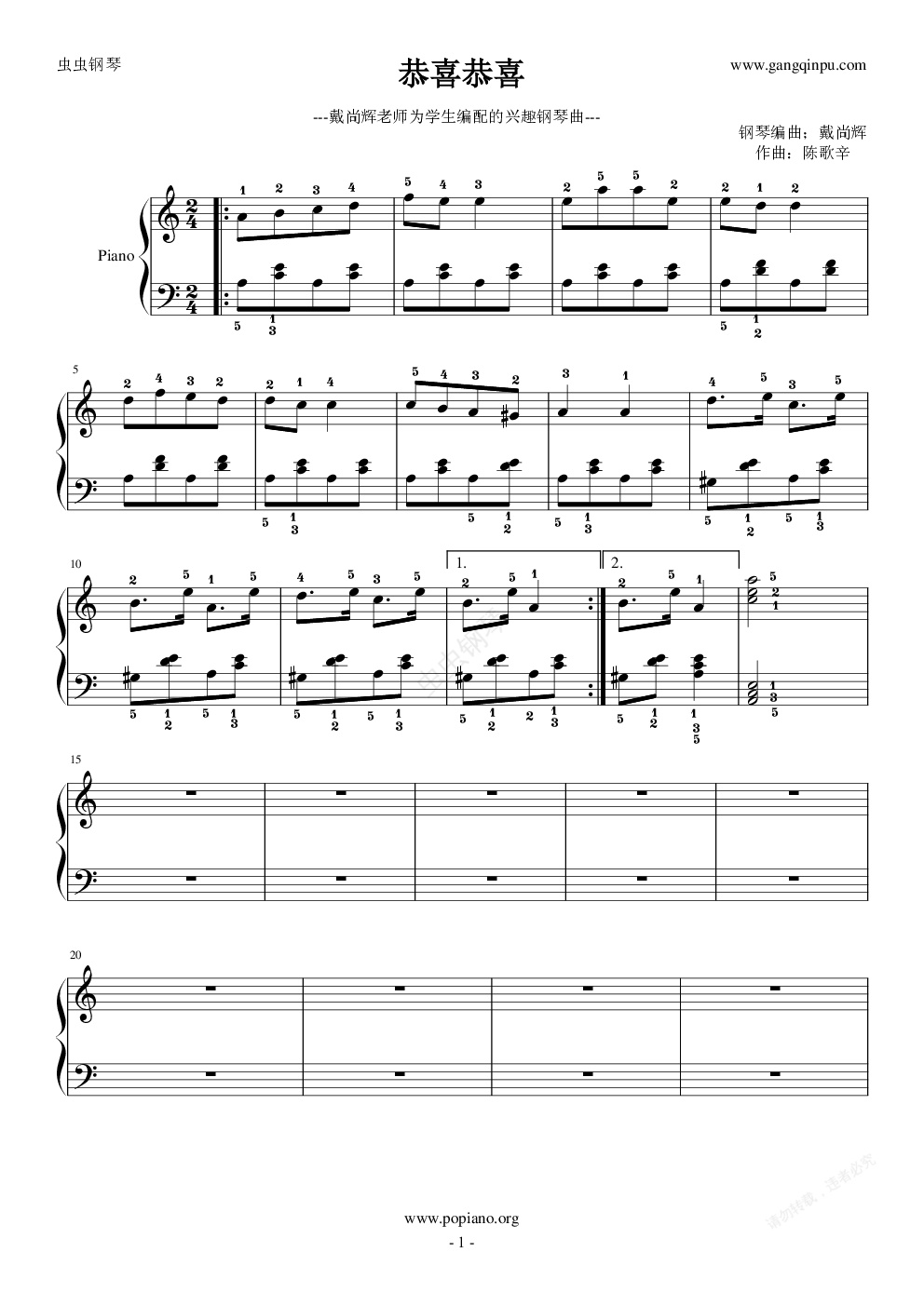钢琴谱:恭喜恭喜 少儿最喜欢的钢琴曲