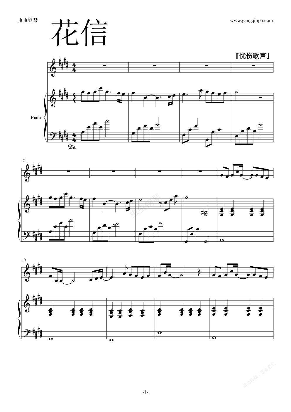 钢琴谱:花信(弹唱)