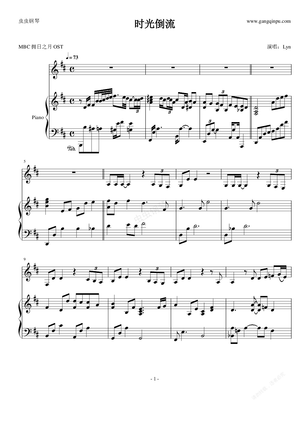 钢琴谱:时光倒流 - 韩剧 拥日之月 OST