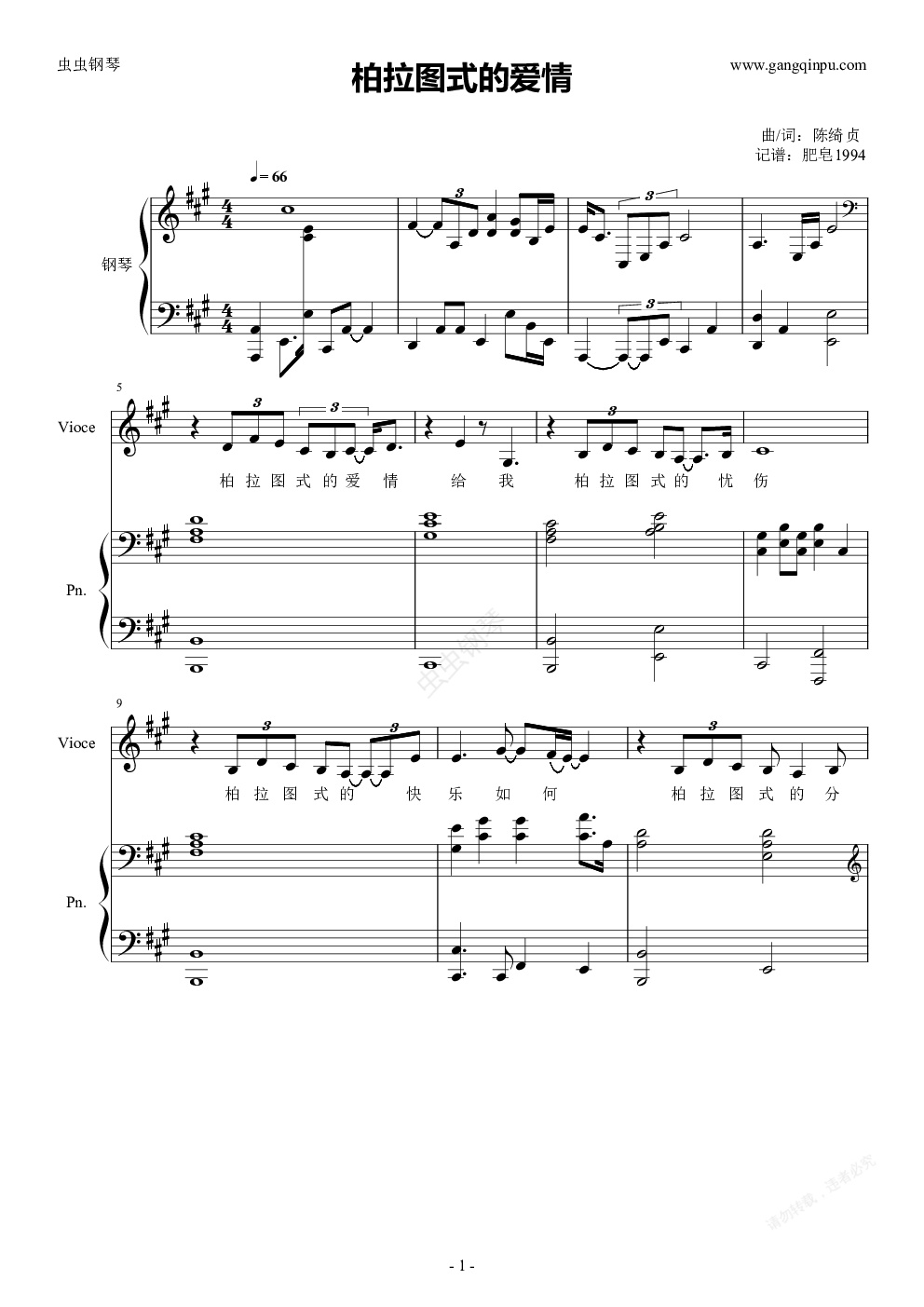 钢琴谱:陈绮贞-《柏拉图式的爱情》