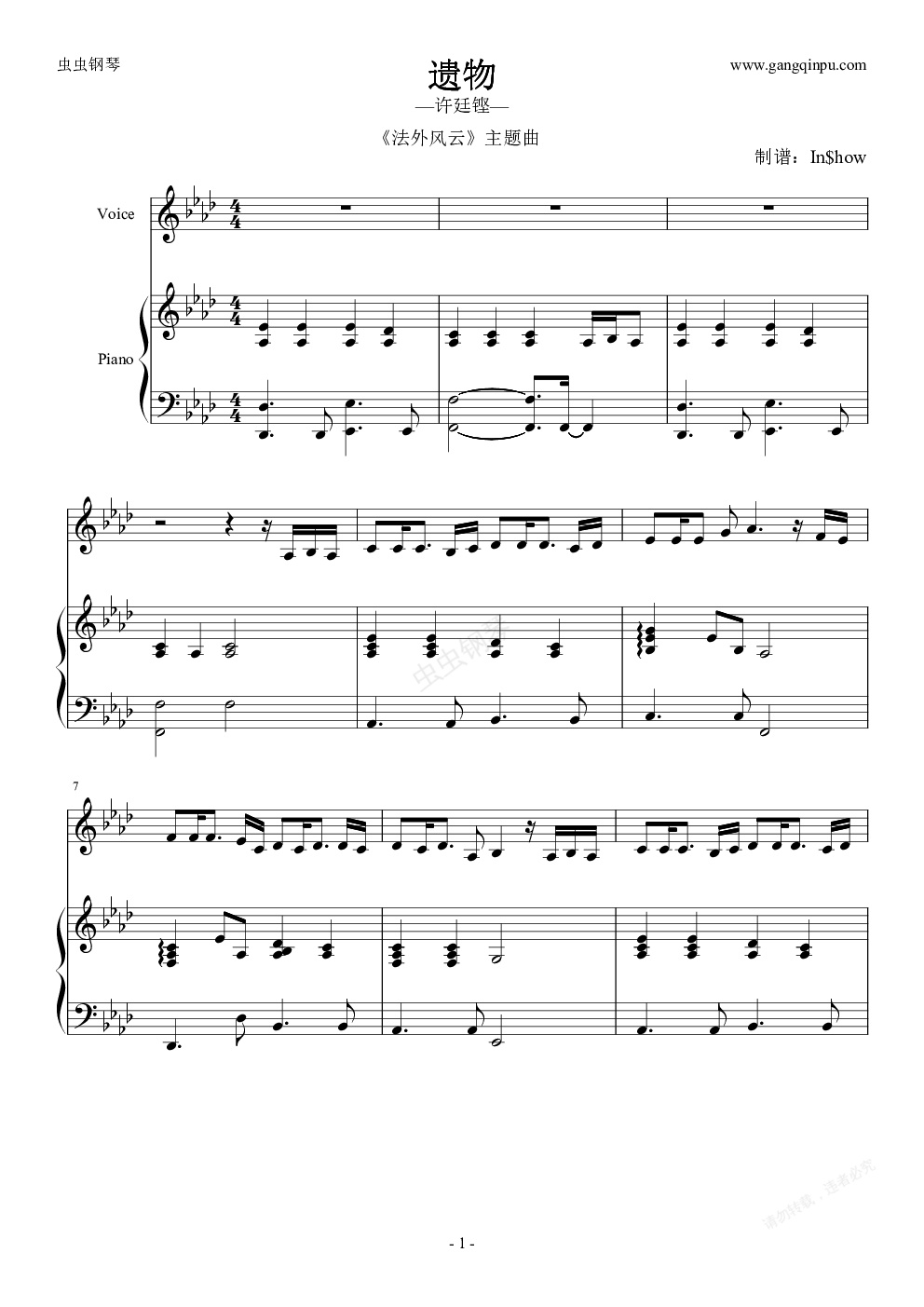 钢琴谱:遗物 - 许廷铿《法外风云》主题曲