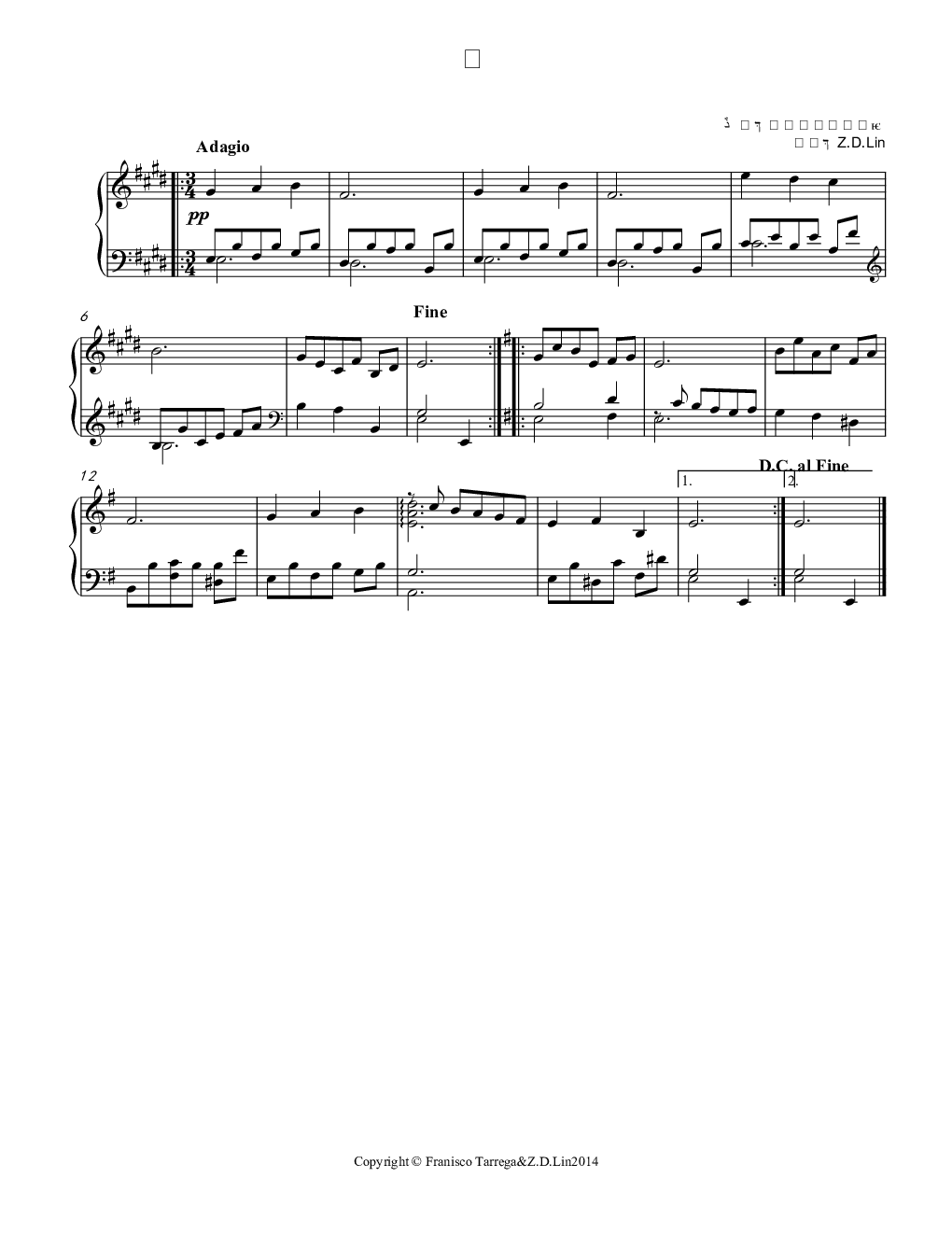 原本是古典吉他名曲,出自古典吉他大师泰雷加之手,全曲虽说简单短小,但却及其悦耳动听。现改编为钢琴版,曲子简单易弹。录音设备极渣,但总比电脑弹得好,录音时手有点抖,仅供参考