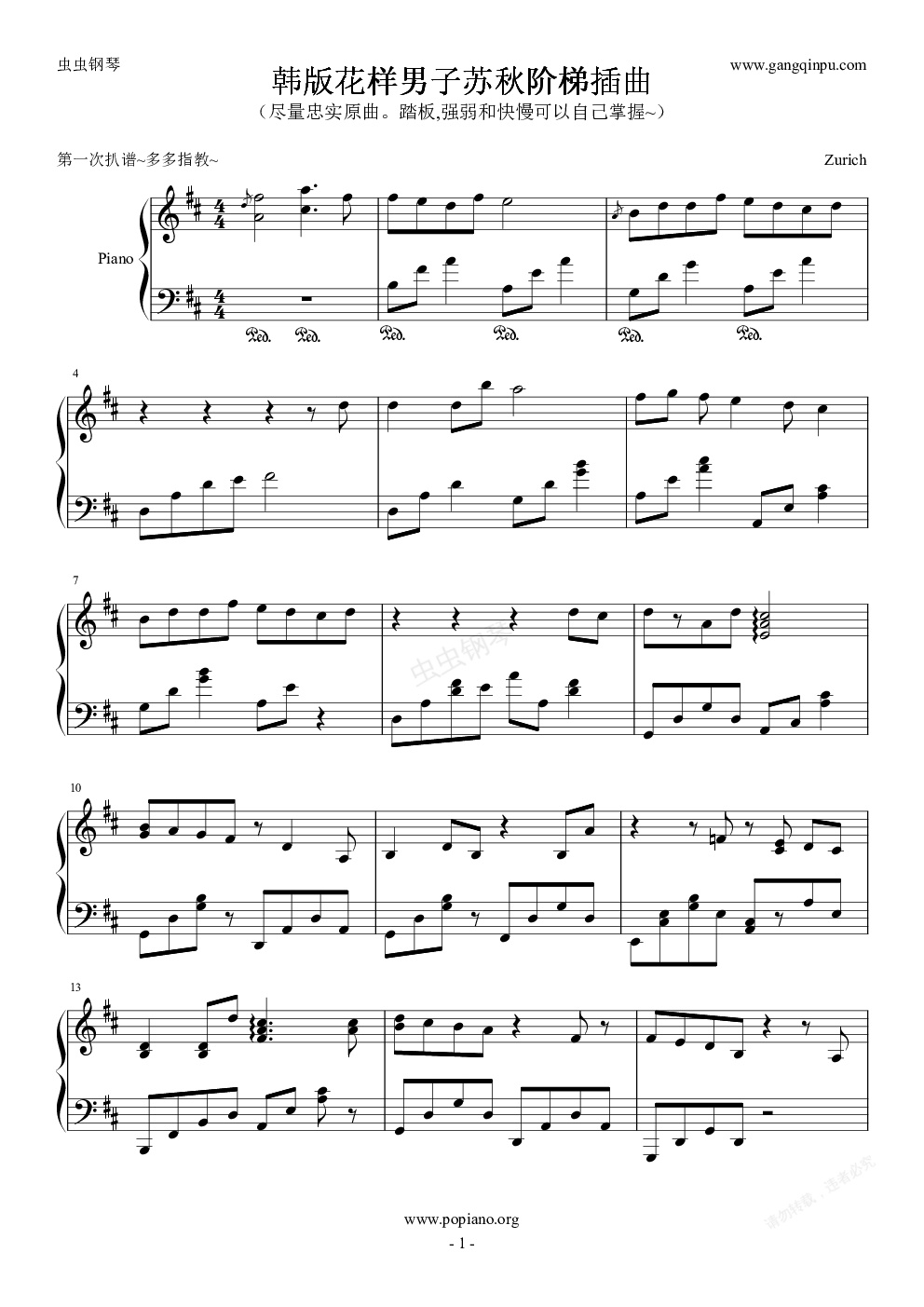 钢琴谱:韩版花样男子苏秋阶梯插曲