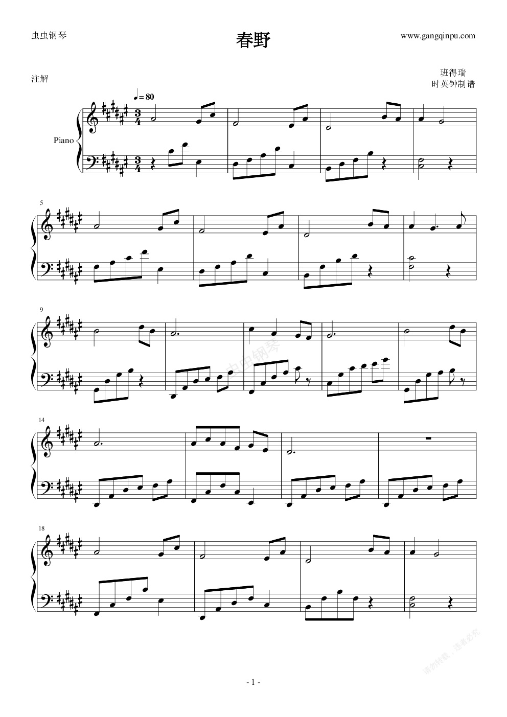 钢琴谱:春野