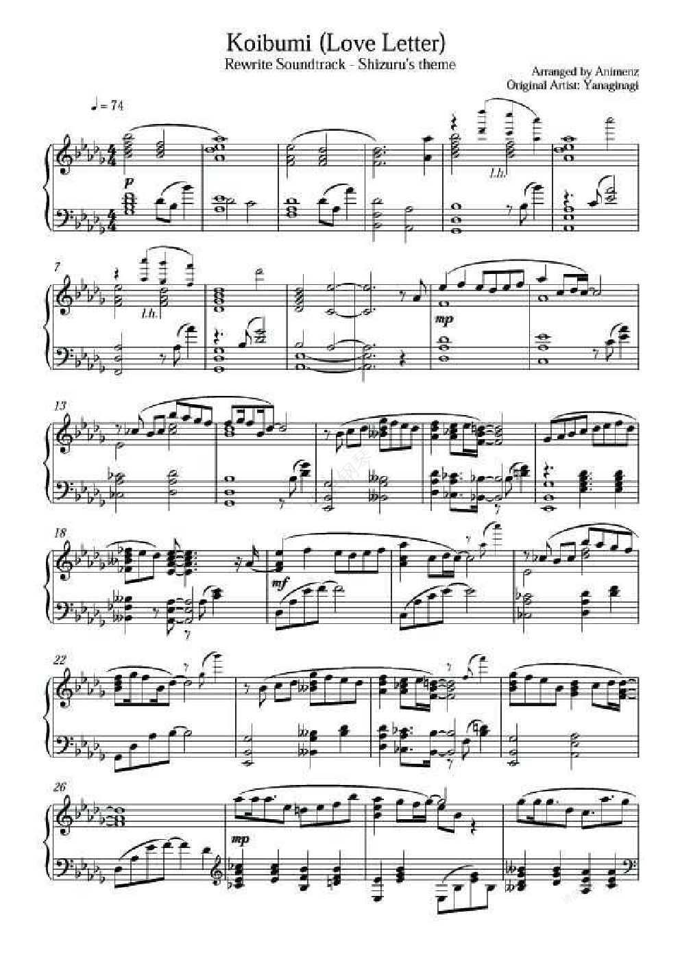 钢琴谱:恋文 Koibumi(Rewrite静流线主题歌)