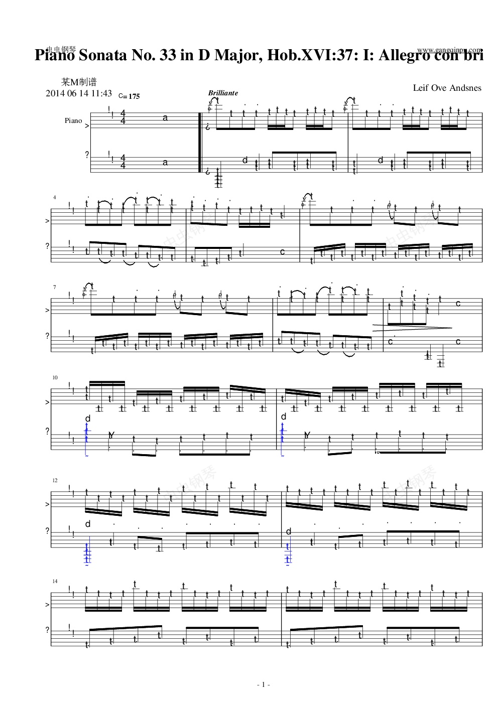 钢琴谱:Piano Sonata No. 33 in D Major
