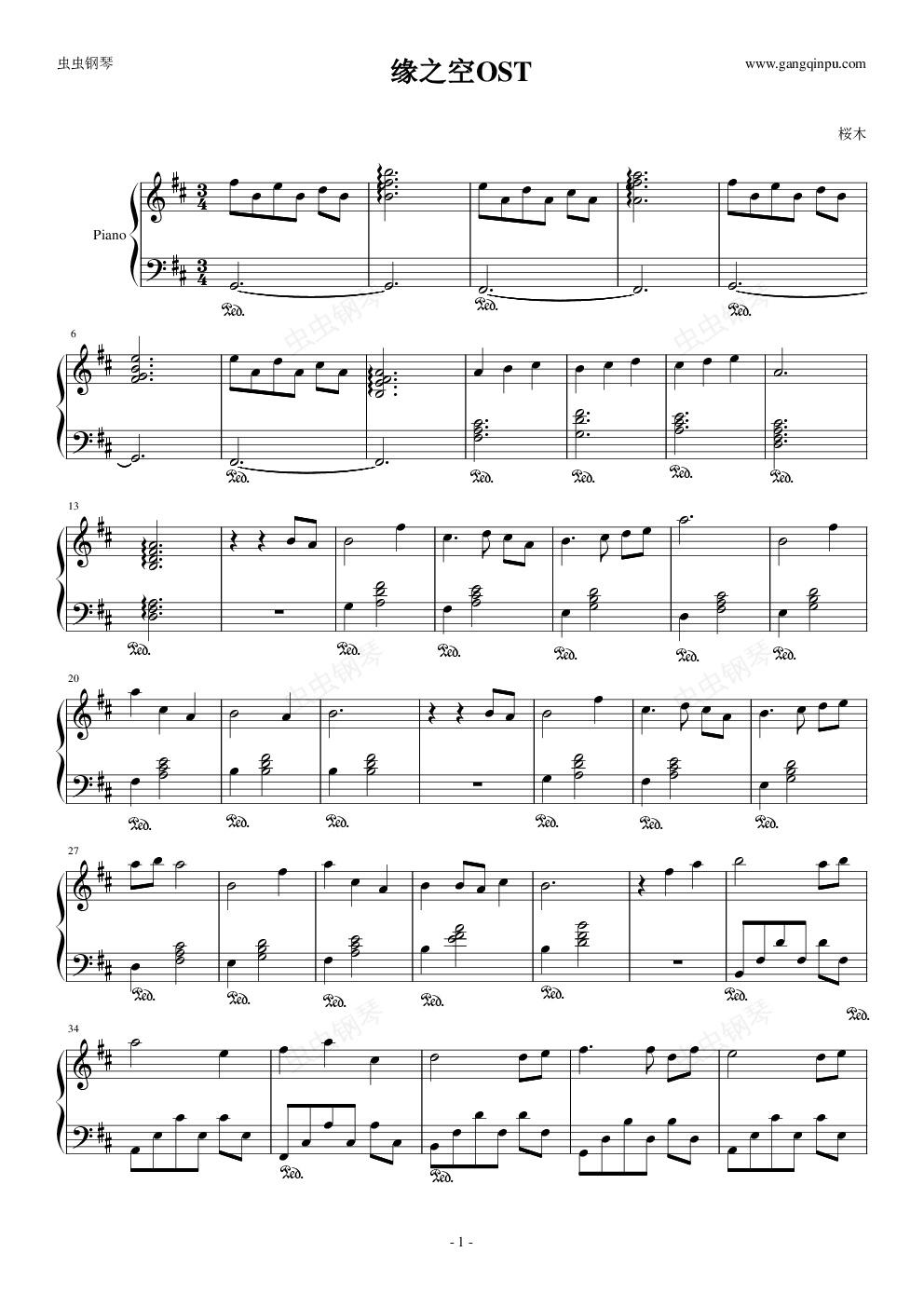 钢琴谱:缘之空OST:记忆