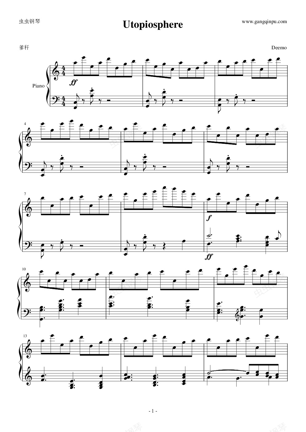 钢琴谱:Deemo-Utopiosphere