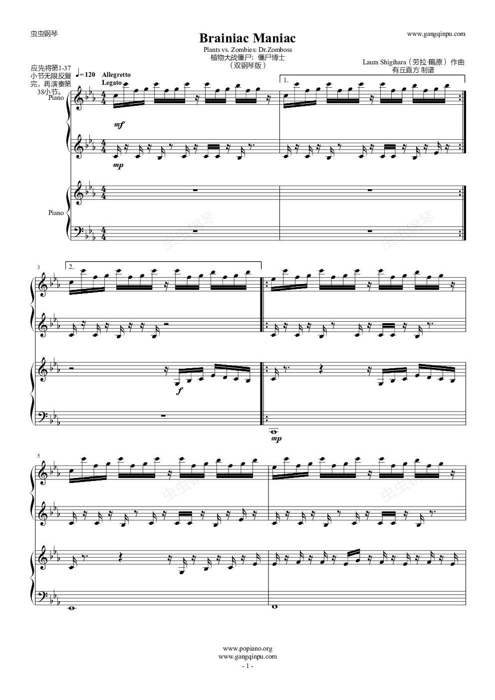 钢琴谱:植物大战僵尸,僵尸博士(双钢琴版)