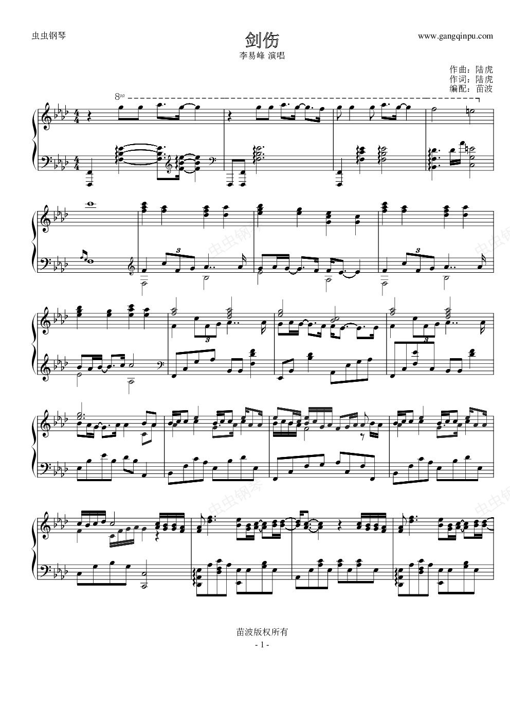 钢琴谱:剑伤-古剑奇谭-李易峰人物插曲