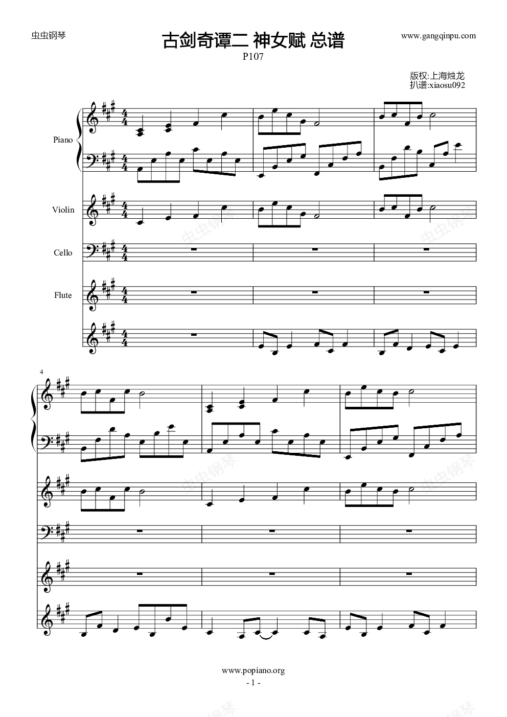 钢琴谱:古剑奇谭2 P107 神女赋 总谱