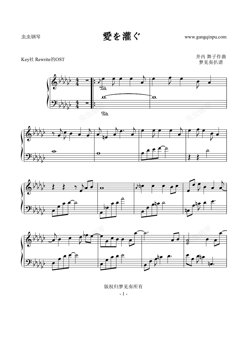 钢琴谱:【Rewrite】愛を灌ぐ