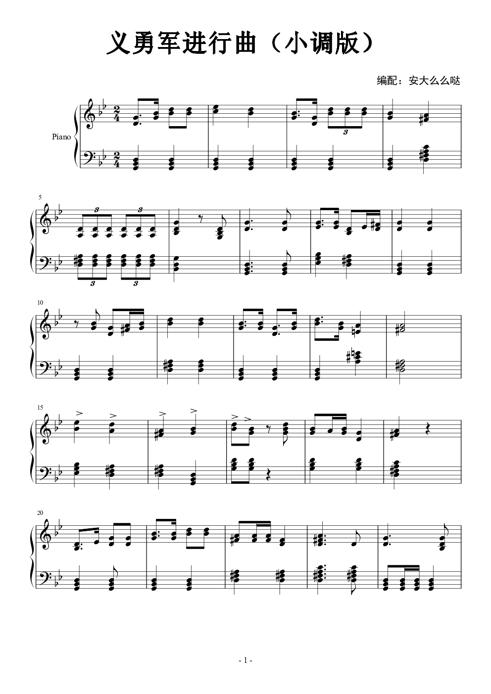 钢琴谱:义勇军进行曲(小调版)