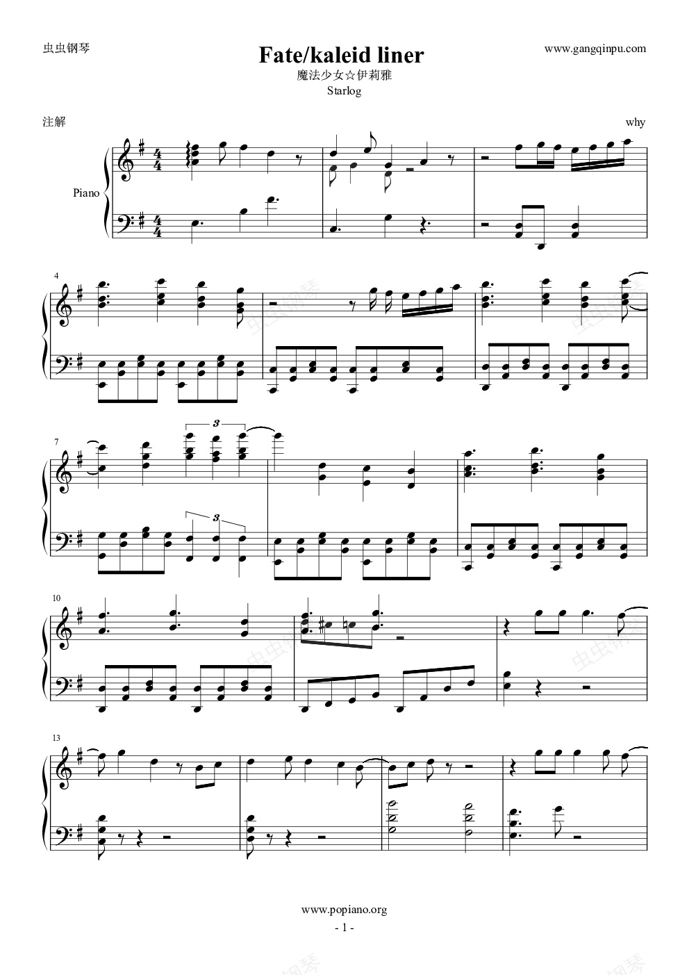 钢琴谱:【ENE】魔法少女☆伊莉雅opStarlog