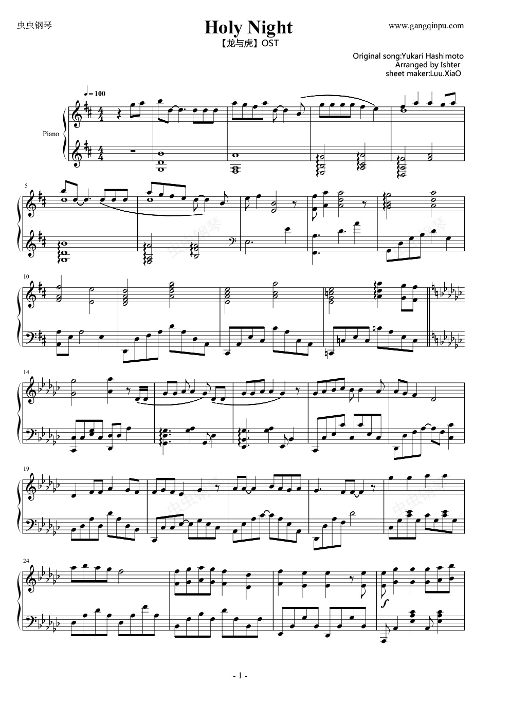 这次是《龙与虎》的OST《Holy night》,是Ep.19里面大河和亚美美一起合唱的那首圣诞歌的piano cover~