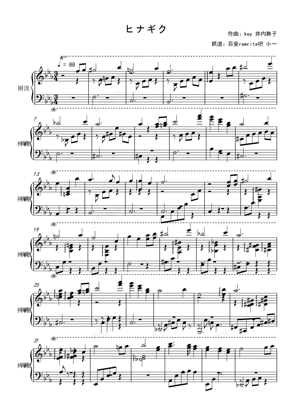 钢琴谱:REWRITE ヒナギク