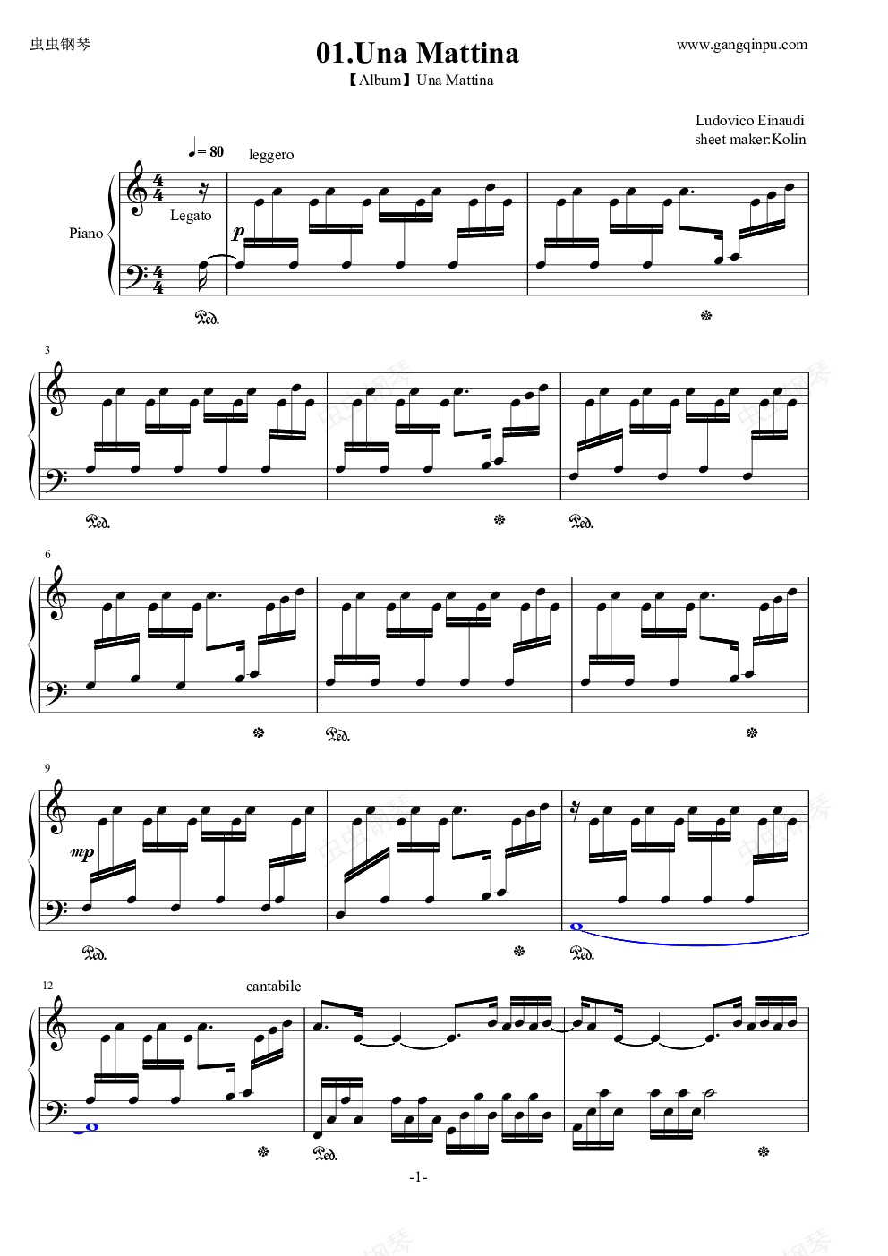 钢琴谱:Una Mattina