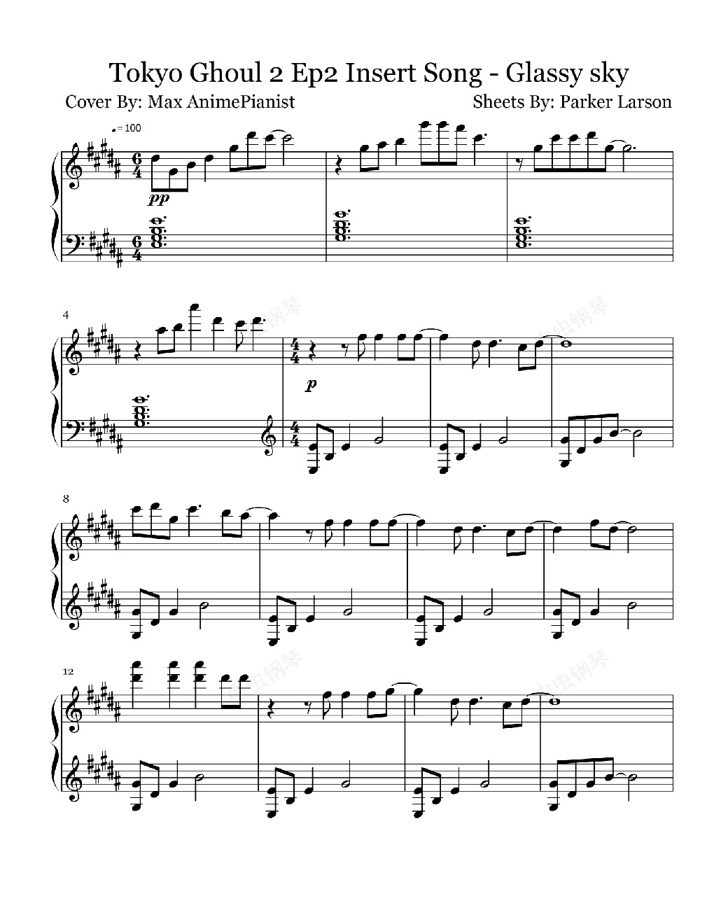 钢琴谱:东京喰种第二季OST Glassy Sky