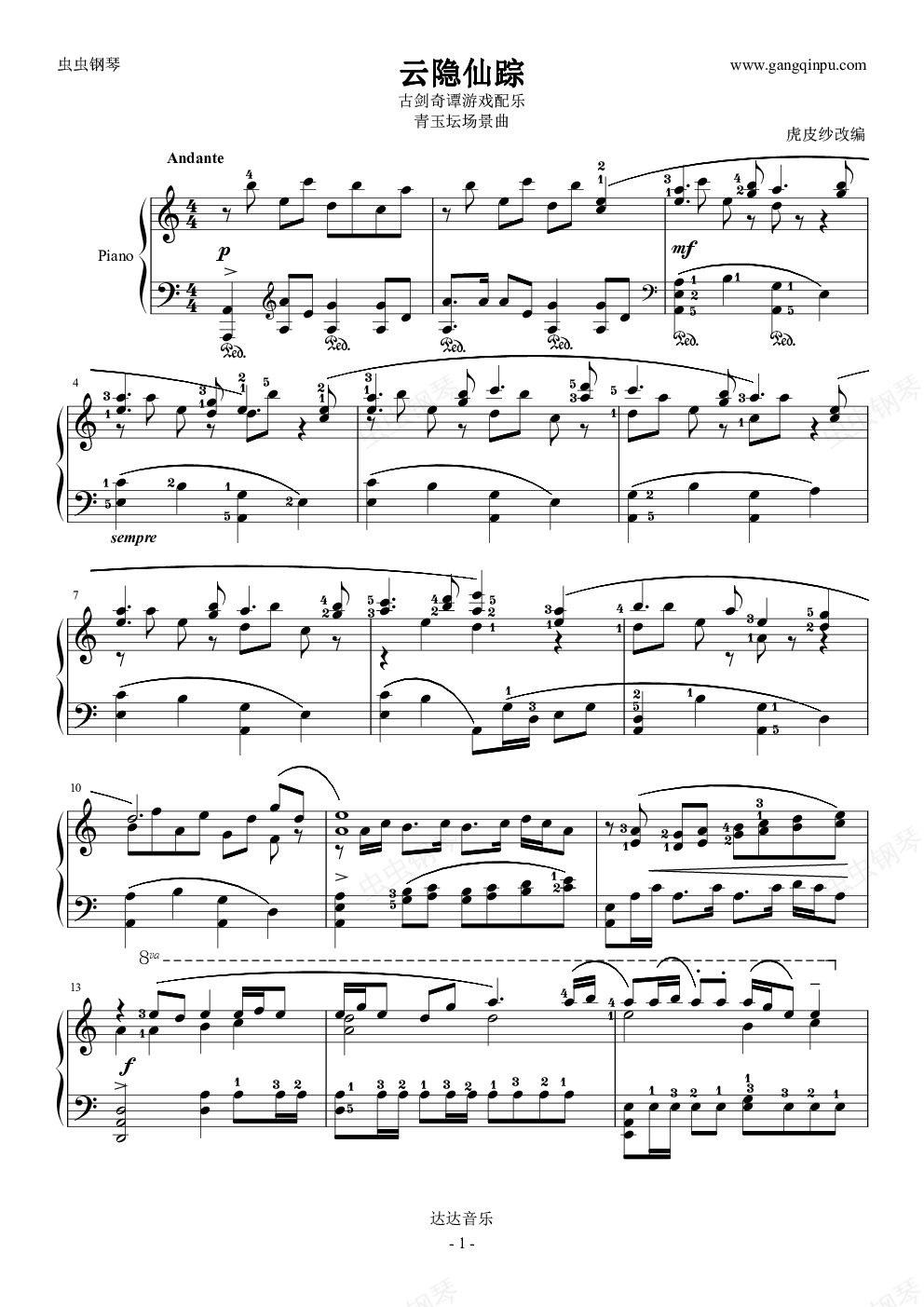 钢琴谱:古剑奇谭 云隐仙踪 青玉坛场景曲