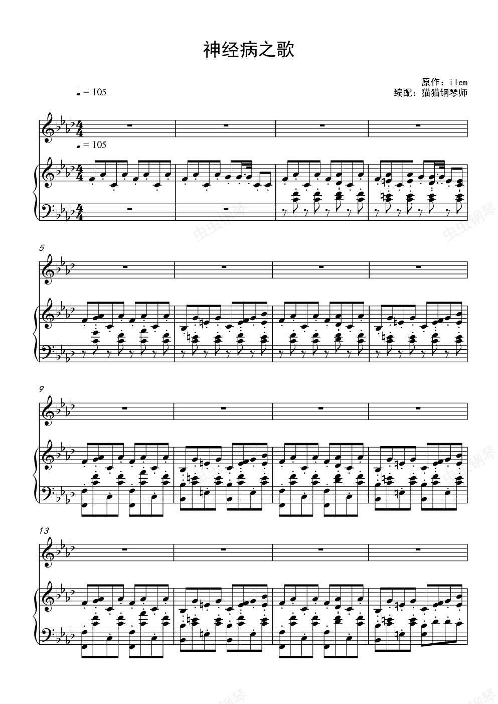 钢琴谱:神经病之歌 纯音乐