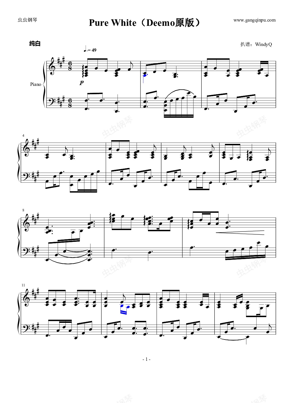 钢琴谱:Deemo - 纯白(Pure White) - 情感100%